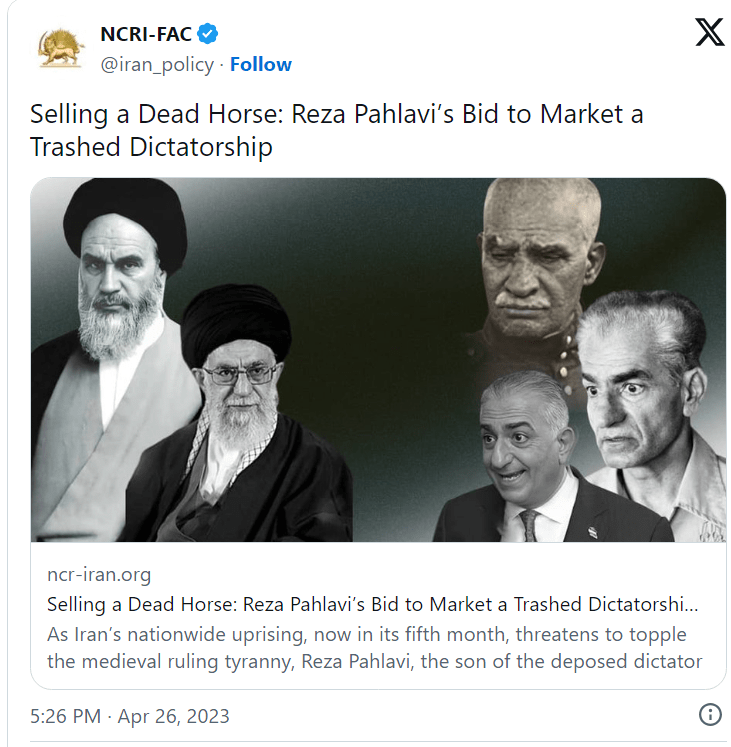 - Att framställa monarkin som den enda lösningen – ”De försöker hävda att det enda sättet att förbättra Irans situation är genom att återupprätta monarkin. De ignorerar både historiska realiteter och det faktum att Reza Pahlavi saknar sina föregångares förmåga.”