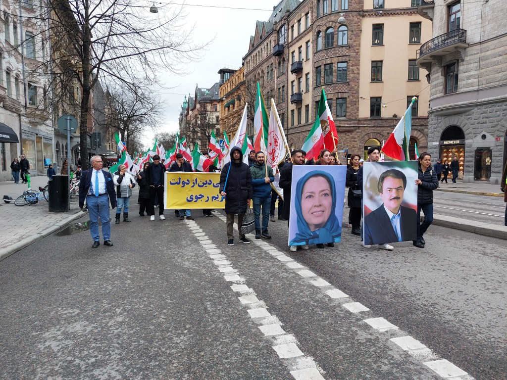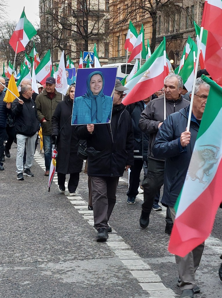 Sedan marscherade folksamlingen genom centrala delar av Stockholm. Under programmet skanderades slagord som ”No Shah NO Mullah”, ”Ned med terrorregimen i Iran”, ”Ned med Khamenei, heja Rajavi” och ”Kvinna, Motstånd, Frihet”.